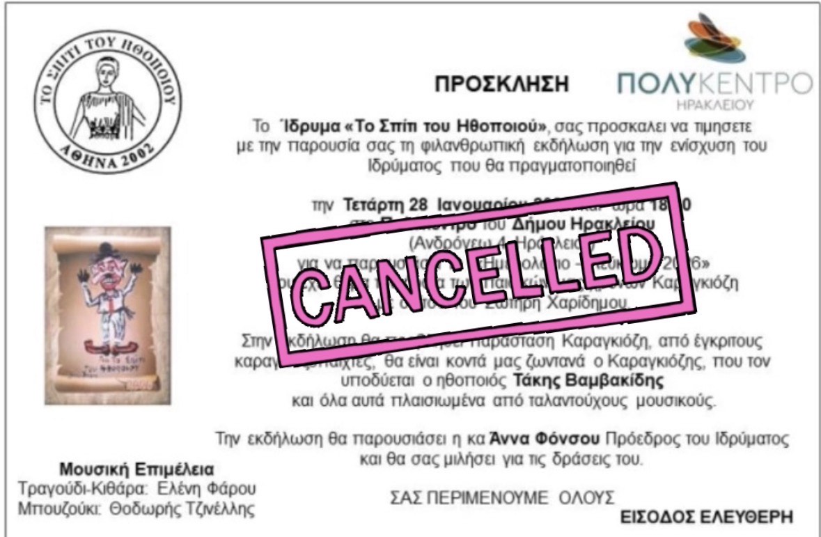 ΑΚΥΡΩΣΗ: Παρουσίαση λευκώματος και εκδηλώσεις από το «Σπίτι του Ηθοποιού» στο Ηράκλειο για την στήριξη του Ιδρύματος